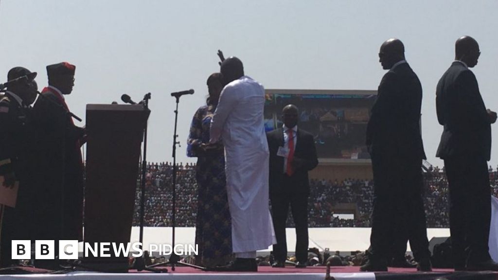Di swearing-in ceremony happen for di Samuel Kanyon Doe stadium near di capital, Monrovia.