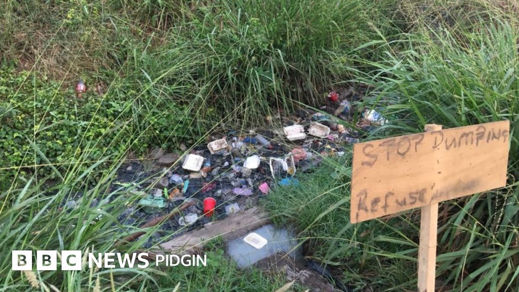 Dirty don full di gutter wey dey front of di High Commission office upon all di signboard wey dey warn people make dem no troway dirty for there.