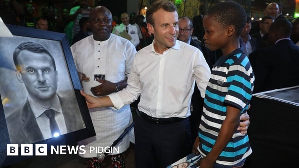 11-year-old Kareem Waris Olamilekan no waste time at all as im draw President Macron wey visit di kontri.