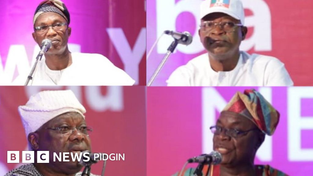 Four candidates jam for di BBC Yoruba governorship debate wey happun Friday for Osun state south-west Nigeria.