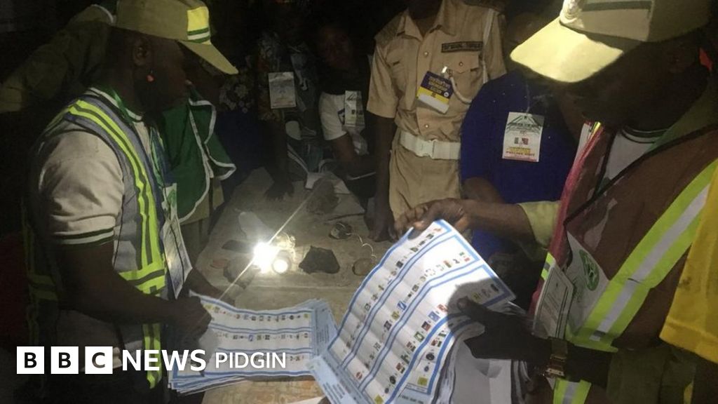 According to law, voting suppose end by 2pm and counting go start. Only pipo wey bin dey line before 2pm go fit vote, new pipo no fit enta line.