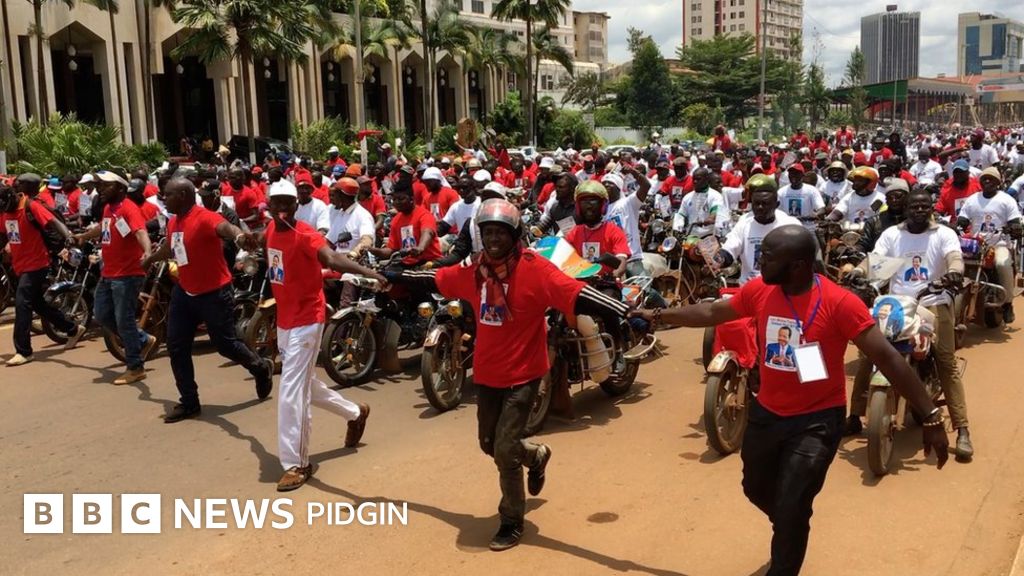 About 40,000 youths dem, bensikin riders, buyam-sellam dem komot for Yaoundé go march say Paul Biya na dia own candidate.