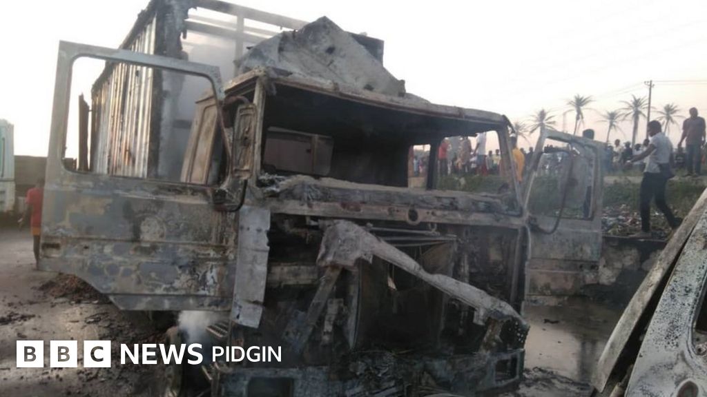 Kehinde Adebayo wey be di PRO of Lagos State Emergency Management Agency (LASEMA) tell BBC Pidgin say dia men rush go di place come see say na one tanker wey cari fuel and one white mini truck wey cari electronics bin jam each oda. Di jamming burst di back of tanker wey come make fuel dey pour for ground.
