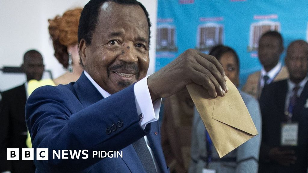 President Biya take pawa from Amadou Ahidjo for 1982, and ten years afta e don always win elections. For 1992, e win elections with 40% vote, 93 percent when opposition bin boycott elections for 1997. For 2004, e win with 75 percent and 78 percent for 2011 . For 2018, e win with 71.3 percent but na only about 2.5 m out of about 22 million population vote yi. Na de only president weh e campaign for 22 minutes win elections dis year and na party mimbas di ever beg e make e bi dia president.