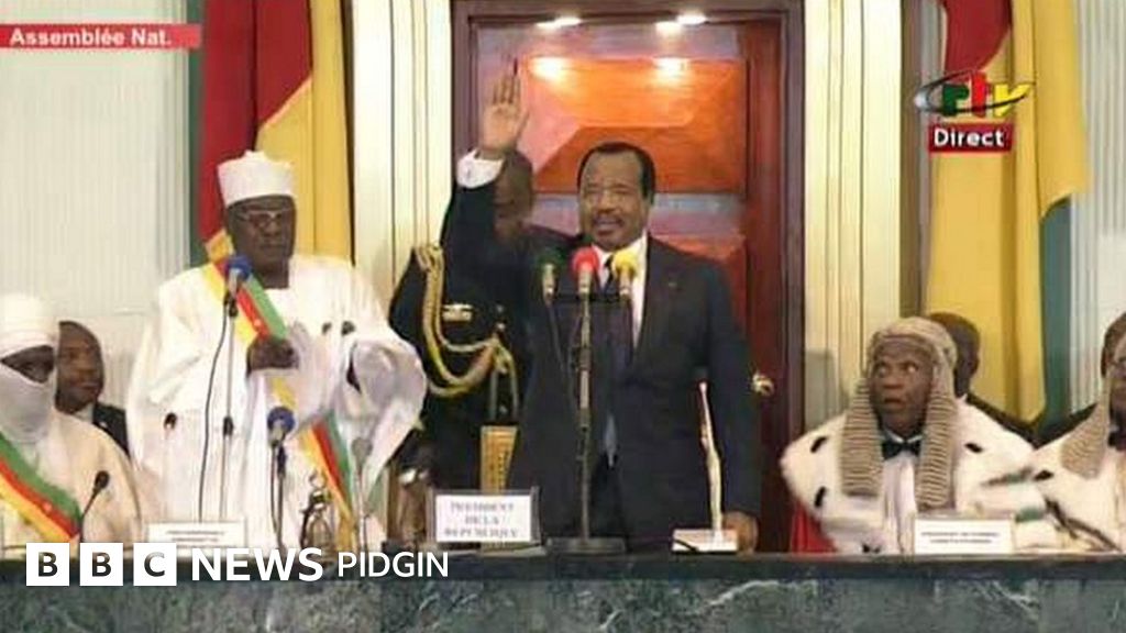 Di 85-year-old, wey don rule for 36 years, put hand for chest say im go uphold di "integrity" and "unity" of di kontri for ceremony wey parliamentary speaker Cavaye Yeguie Djibril dey incharge.