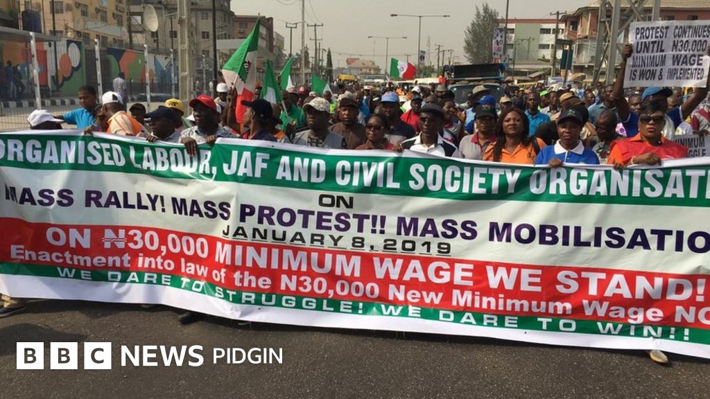 Nigeria Labour Congress on Tuesday carri waka enta streets for some states across di kontri to protest di 30,000 naira minimum wage mata wey dem dey demand from goment.