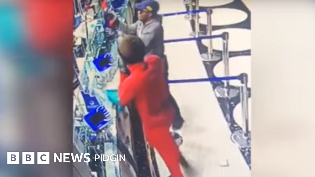 Camera catch dem as dem dey break enta di bureau de change and scata di glass before dem tiff and run.