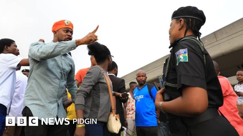 One of di pipo wey dey collabo di #RevolutionNow protest Solomon Lenu tell BBC Pidgin say dem no fit continue wit di protest for for Port Harcourt, Southern Nigeria, because police don clamp down everi where and no gree allow dem do di protest.