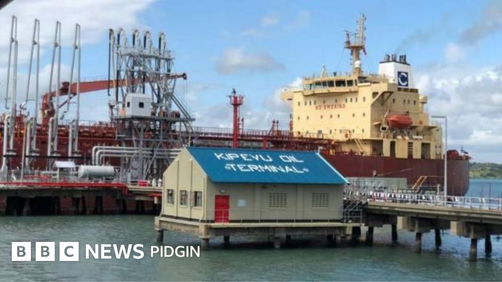 Kenya don export dia first batch of oil as Presido Uhuru Kenyatta tear rubber di crude shipment from di port of Mombasa on Monday morning.