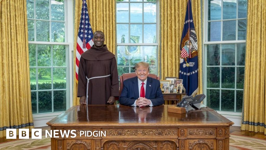 White House press secretary, bin tweet di picture of dia meeting for di Oval Office, dem write say Brother Tabichi "give out 80% of im monthly salary to epp di poor for im home kontri of Kenya".