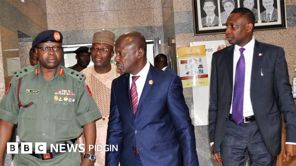 Inside press conference wey EFCC do wit Ministry of Youth and Sports Development and NYSC, Acting Chairman of EFCC, Ibrahim Magu say, part of im organisation mandate to give pipo informate.