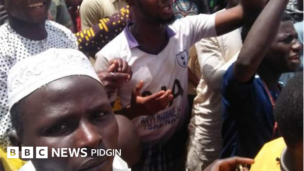 One small group wey dey do "I no gree" bin gada outside di headquarters of di Islamic police, wey dem dey call di Hisbah, for di northern city of Kano.