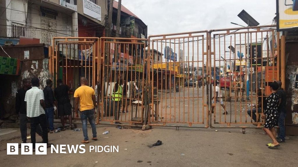 BBC Pidgin tori pesin observe say di popular computer village market dey lockdown, while some shop owners sidon one corner dey gist.