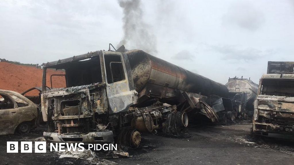 Di fire start around 6am Tuesday morning wen one fully load petrol tanker burst into anoda truck while dem dey inside heavy traffic for di highway.