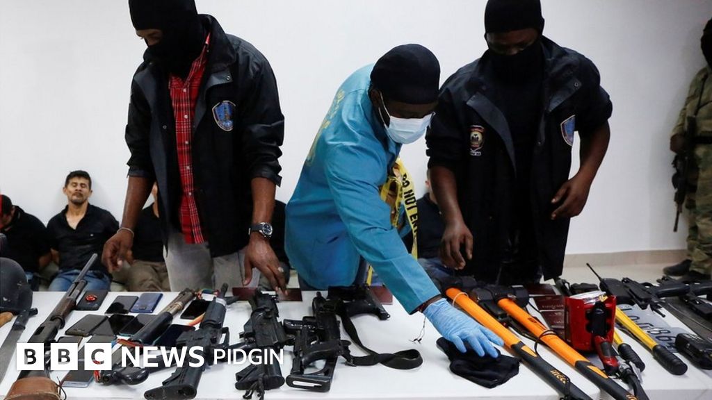 On Thursday, police bin parade some of di suspects give media wit dia weapons, Colombian passports and other evidence. "Foreigners come our kontri to kill di president," oga Charles tok.