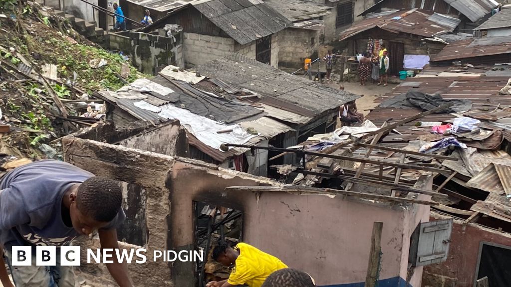 Eye witnesses tell BBC Pidgin say di fire start late Saturday afternoon from electrical spark from house of one woman as she bin dey watch film with her four pikins inside one of di batcher houses.