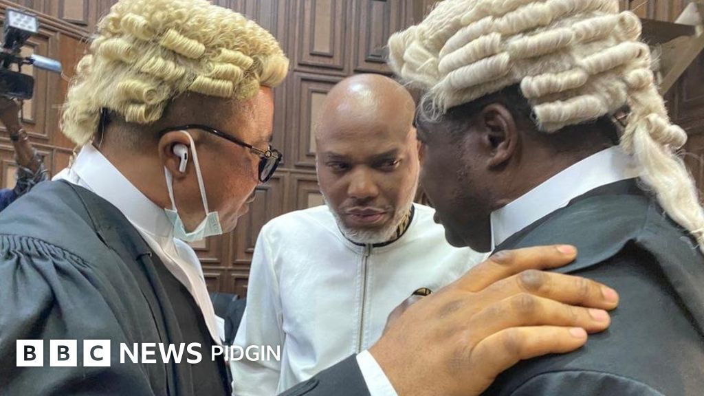 Dis one na as Mike Ozekhome, Kanu lawyer on Tuesday bin hala on top some issues about di fundamental rights of Kanu say dem no even allow am as di lawyer to show am di charge sheet.