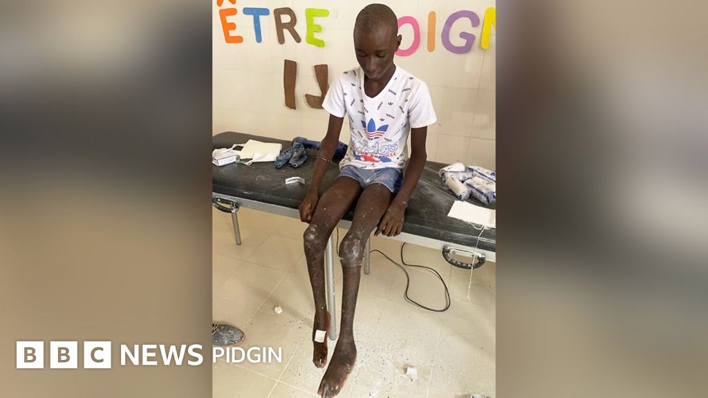 School bin dey hard - watching oda pikin run around and jump - whereas Fatou bin dey forced to rely on crutches.