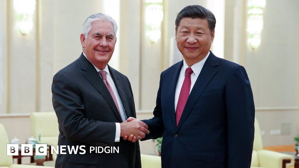 Wetin we call dis foto, US Secretary of State Rex Tillerson bin don meet China President Xi Jingping and other top officials on top North Korea matter