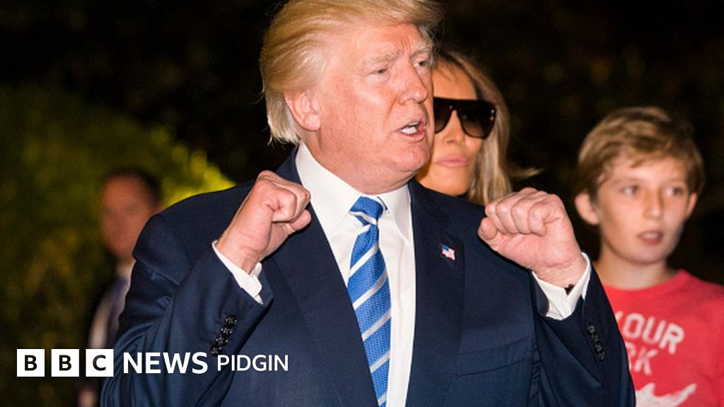 Sharp-Sharp, Trump carry vex enter Twitter say Tom Steyer (di billionaire wey sponsor di advert) don dey fight im 'Make America Great Again' agenda.
