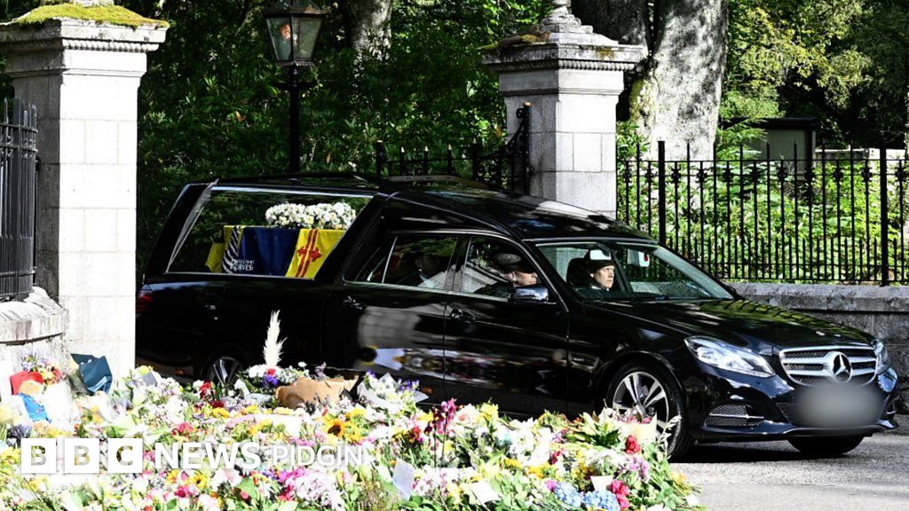 Di Queen don leave Balmoral, her residence inside Scotland wia she die on Thursday September 8, for di final time.