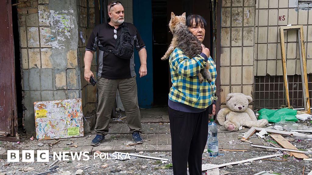 Natalia Patrikeeva z BBC News Ukraina rozmawiała z ocalałymi z bombardowania w dzielnicy Solomianskyj w Kijowie.