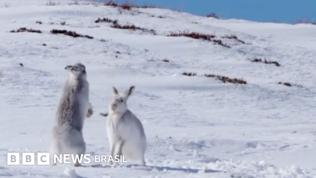 Lebres-da-montanha fêmeas lutam 'boxe' para afastar investidas de machos