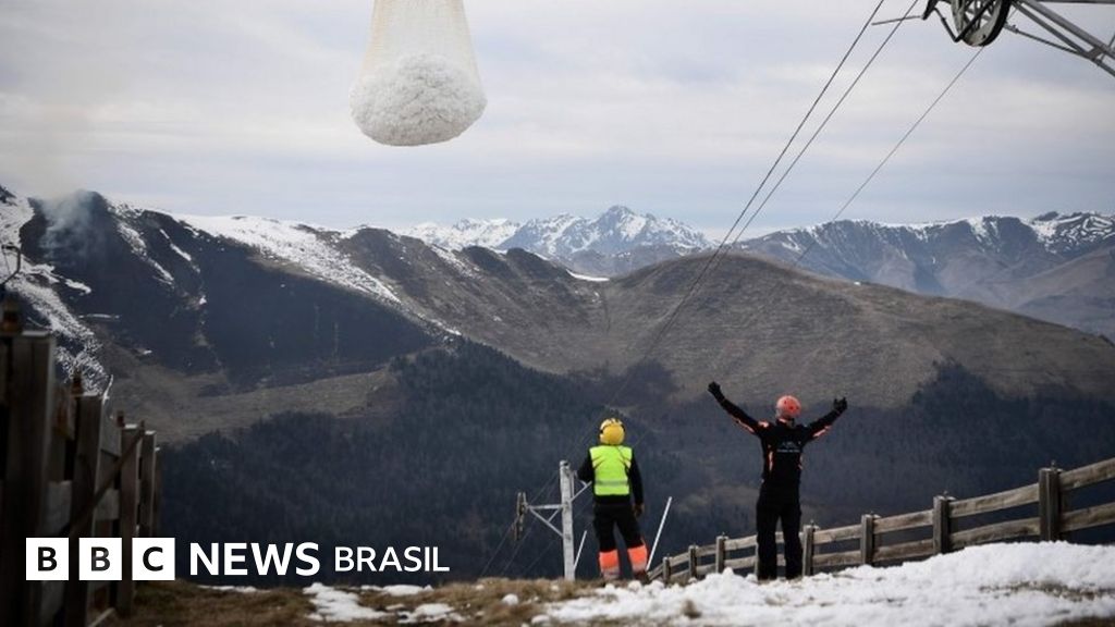 Estação de esqui recorre a neve trazida de helicóptero para cobrir pistas derretidas