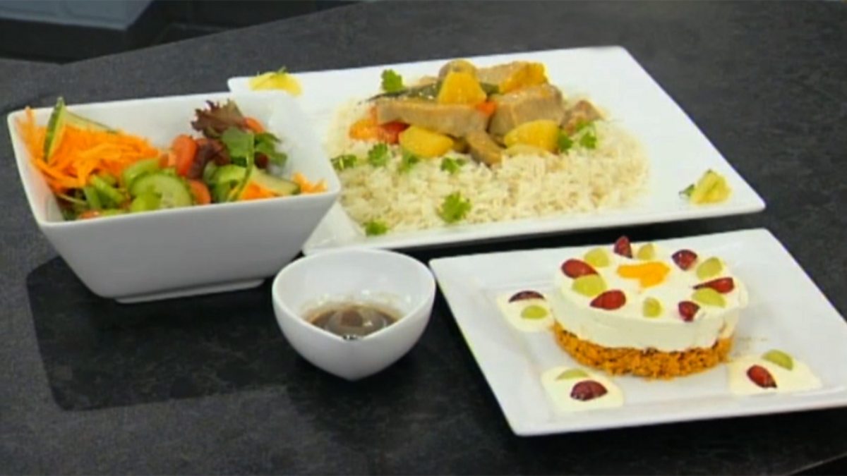 Tha an fharpais aig an leth-chuairt mu dheireadh. Our two semi-finalists go to opposite corners of the kitchen as they are presented with a particular ingredient each has to use.