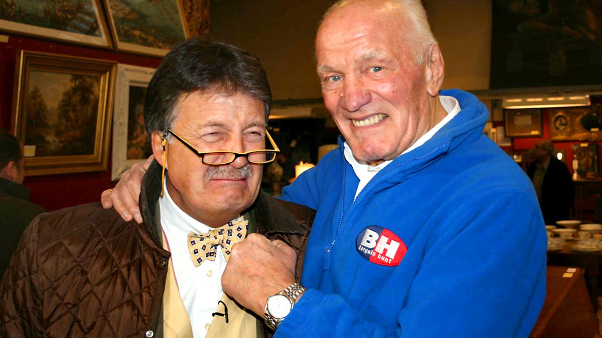 Sporting giants Henry Cooper and Geoff Capes vie to be champ when they meet each other in an auction saleroom for Bargain Hunt Famous Finds. Henry, accompanied by his eldest son, Henry Jnr, takes on the might of Geoff and his partner, Kashi. They sell items bought at an antique centre in upmarket Chelsea.