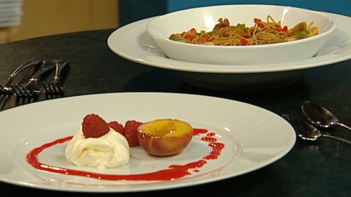 Two celebrities compete in the kitchen.