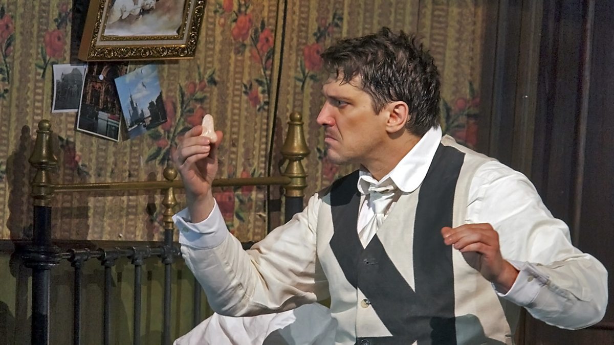 Kovalyov has a shave in Yakovlevich's barbershop. The following morning, Yakovlevich discovers Kovalyov's nose in his freshly baked loaf of bread, much to the annoyance of his wife who demands that he gets rid of it. He eventually manages to throw it into a river, by which time Kovalyov has noticed it's missing and begun to hunt for it. It turns up in the Cathedral, human sized, dressed as a State Councillor, and wanting nothing to do with its desperate owner. It then escapes from Kovalyov, who spends the rest of the opera being outwitted by it.