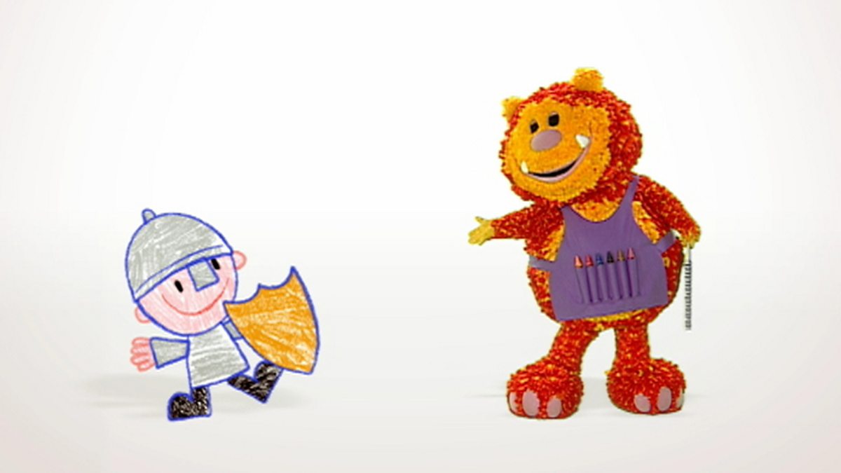 Sgrìobag is a monster who lives in a plain white world, but with the help of her pencils and paper it doesn't stay white for long. Sgrìobag uses a curved line to draw a knight called Sir Strìmhor. He is on his way to rescue a beautiful princess from a terrible - and awfully noisy - monster. After hearing the monster's growls coming from the princess's castle, Sgrìobag draws them a boat so they can get to the tower.