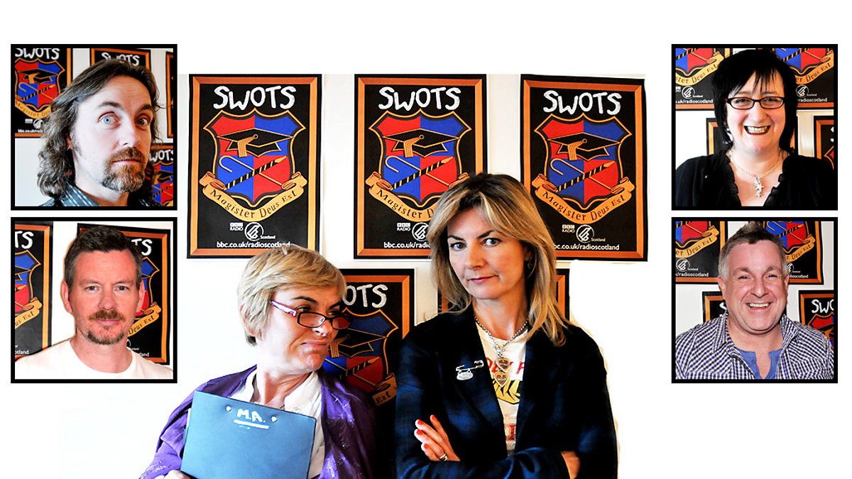 Substitute head teacher Jo Caulfield presides over the class of unruly celebrity pupils, with the aid of school secretary, the inimitable stand-up Susan Morrison. This week's contestants are John Gordon Sinclair, Sandy Nelson, Elaine Mackenzie Ellis and Bill Leckie.