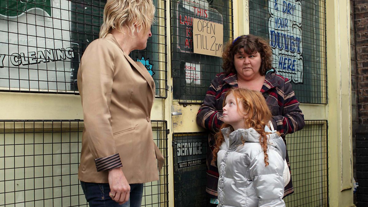 Tiffany’s wet the bed and sneaks her sheets to the launderette. She’s upset that Carol’s babysitting. Carol tells Connor she can’t see him that night. Whatever Connor says, Whitney believes they can be a couple and tells Connor to meet her in the Vic. Carol and Liam are watching TV when Ronnie knocks on the door. Carol’s about to answer the door when she sees Connor in the hall.