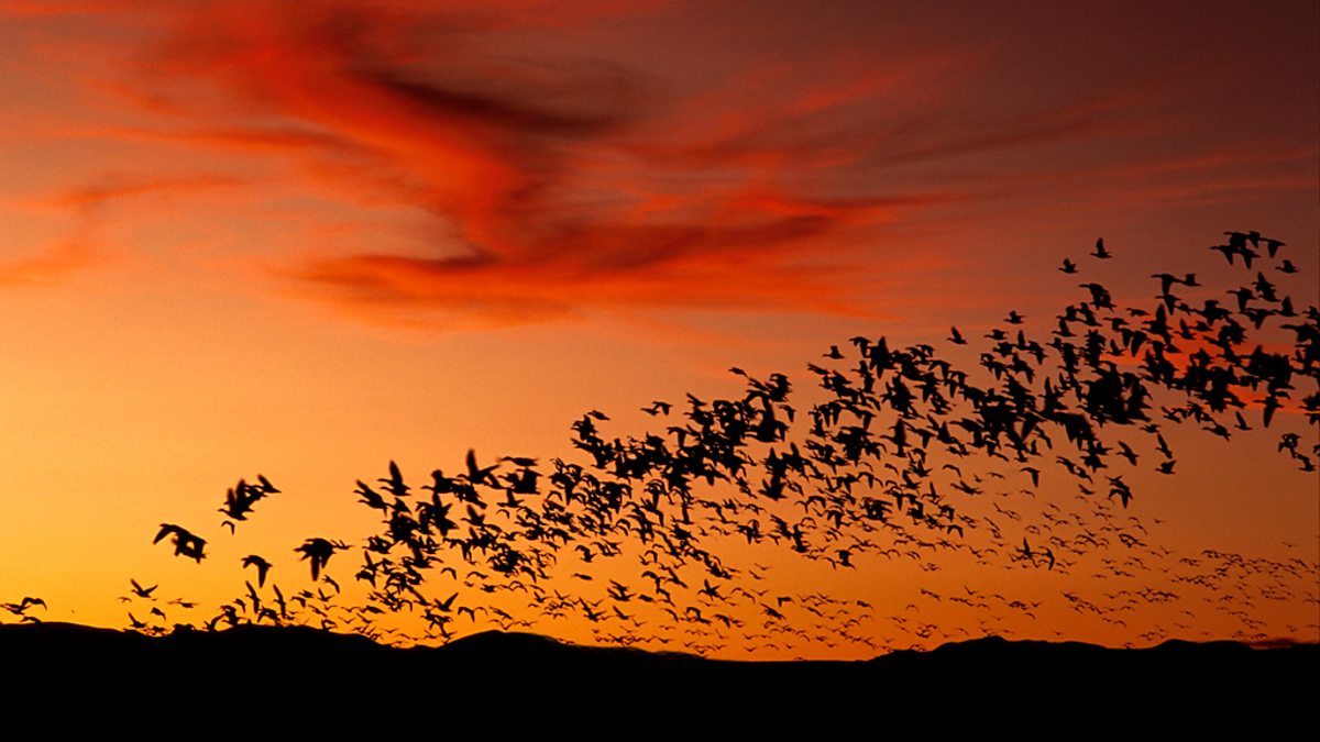 As the light intensifies, goose chatter begins, increasing in volume as more and more barnacle geese awake. As if choreographed by an unseen hand, a huge cloud of geese simultaneously rise from the salt marsh and fill the air as if a single organism, flying across the merse towards Lionel and Brian.