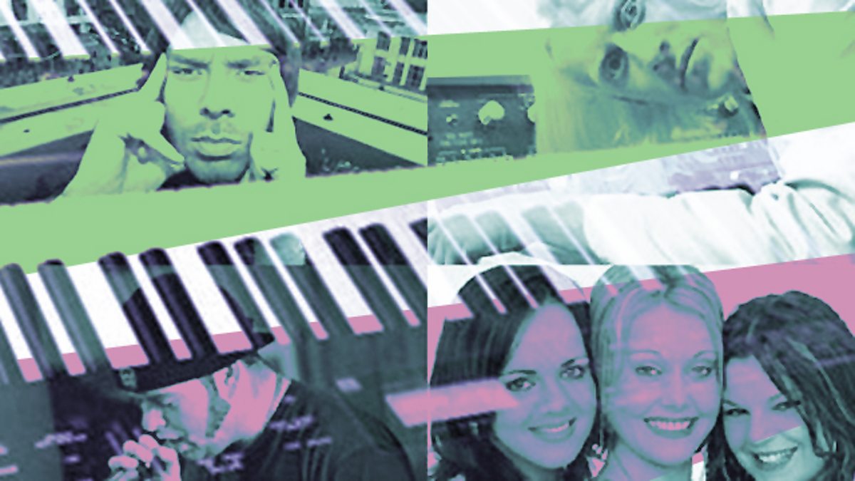 MC Mabon, Ed Holden, Dave Wrench a Tesni Jones a Ceri Bostock o'r grŵp Pheena yn recordio EP mewn noson.