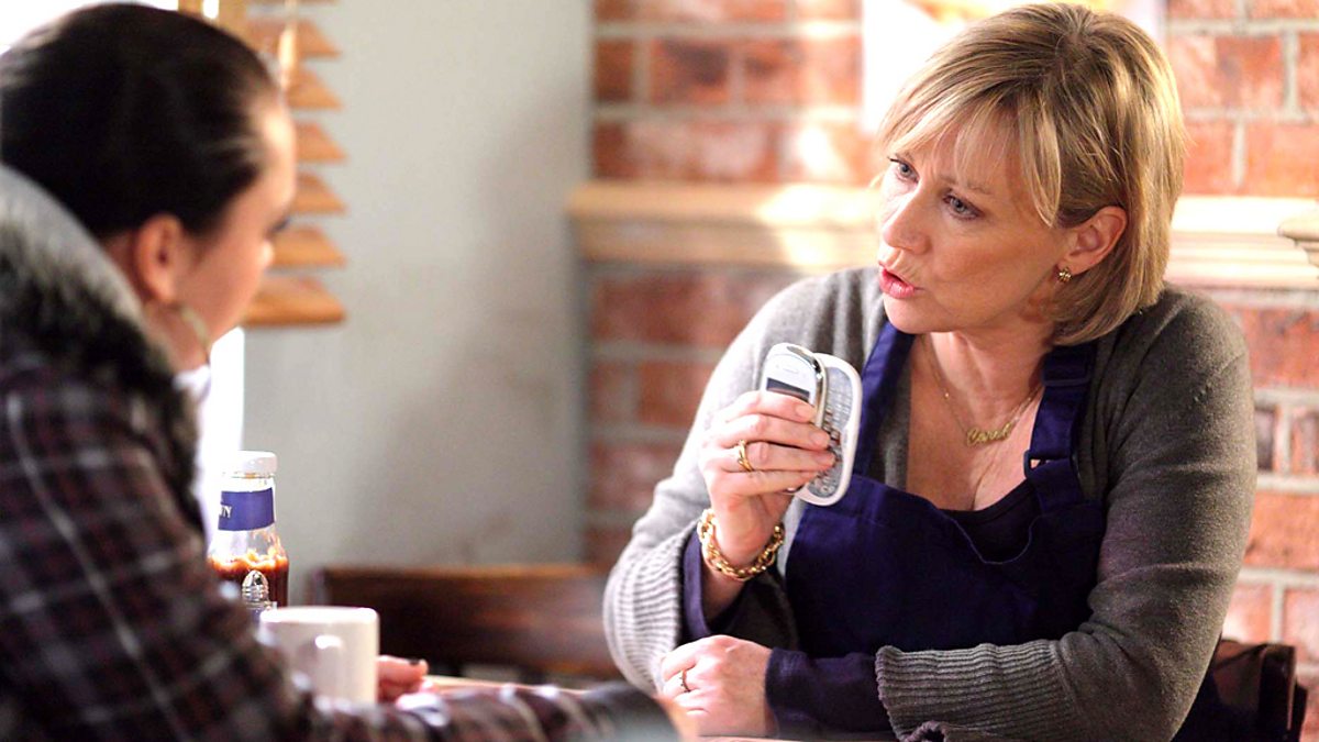 Heather’s back at work. She realises Julie’s stolen a birthday card from the Minute Mart. Julie explains her son was taken away from her, she writes him a card every year and keeps it. Heather kindly tells Julie she has BO and washes her clothes.