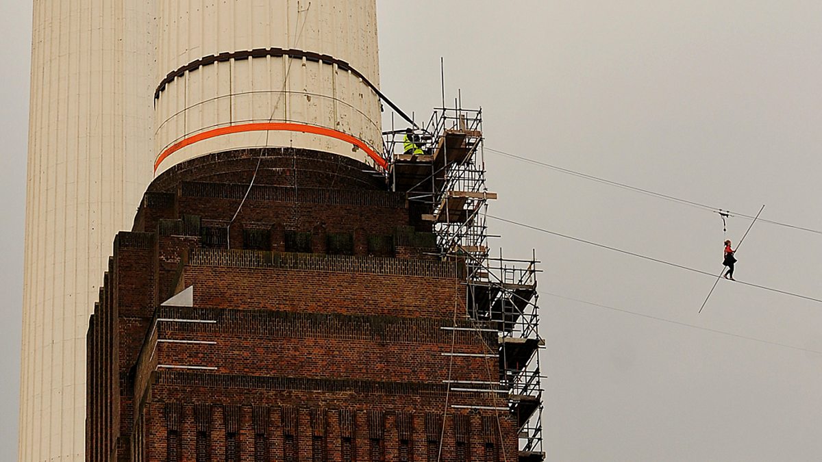 The full story of daredevil Blue Peter presenter Helen Skelton's incredible attempt to walk a high-wire between two chimneys of London's Battersea Power Station.