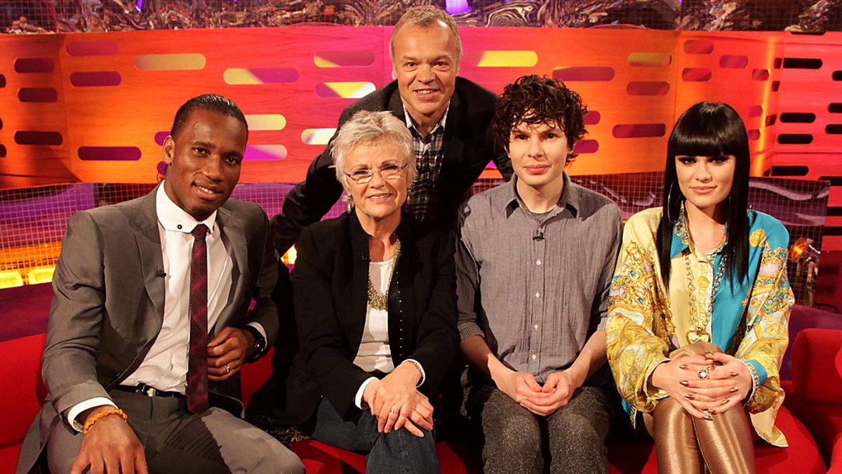The guests on Graham's sofa are acting royalty Julie Walters; Chelsea striker Didier Drogba; comedian Simon Amstell, currently starring in his sitcom Grandma's House; and The Voice UK star Jessie J, who chats and performs her single LaserLight.
