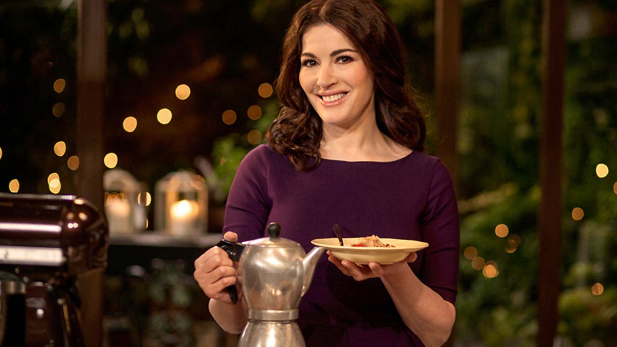 For her pasta dish, Nigella is cooking spelt spaghetti - an earthy choice to match a fresh, no-cook olive and anchovy sauce. And Nigella's weekend indulgence is sambuca kisses - delicate, doughnut-like treats, so light that one would never be enough.