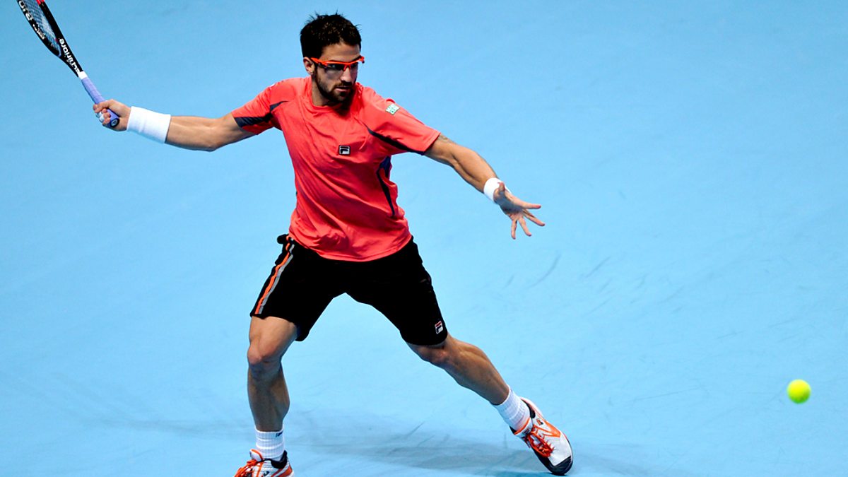 Sue Barker presents further live coverage from the O2 Arena in London, where Roger Federer takes on Janko Tipsarevic. The competition begins with a round-robin phase.