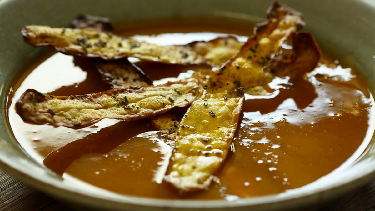 Including butternut squash soup with crisps, rib ragout and cherry chocolate iced rice.