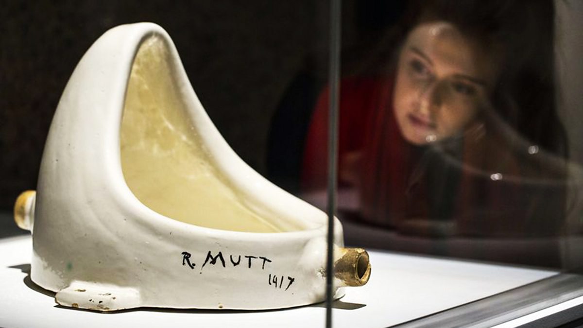Image Above: Visitor looks at the work Fountain (1950 replica of 1917 original) by Marcel Duchamp. Installation shot © Felix Clay 2013. Courtesy of Barbican Art Gallery