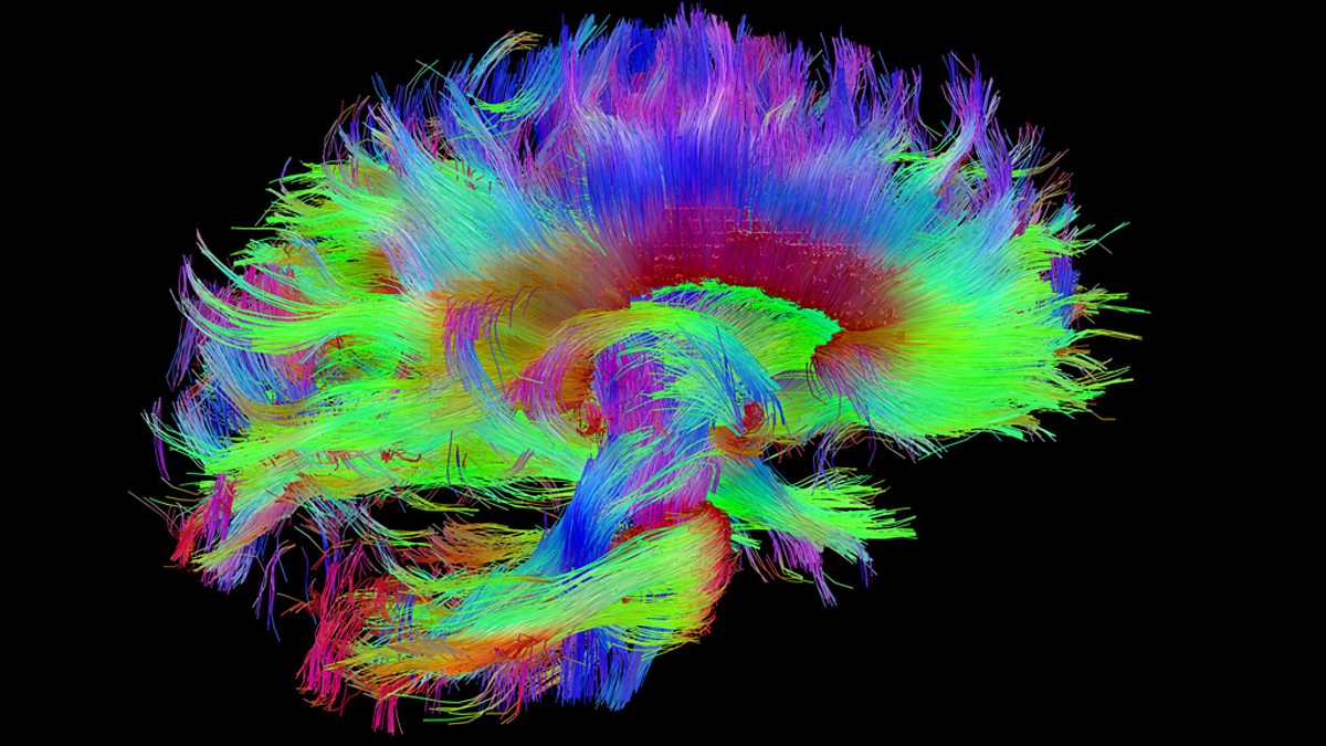 Episode image: a brain scan mapping the structure of neural connections, courtesy of the Laboratory of Neuro Imaging at UCLA and Martinos Center for Biomedical Imaging at MGH.
