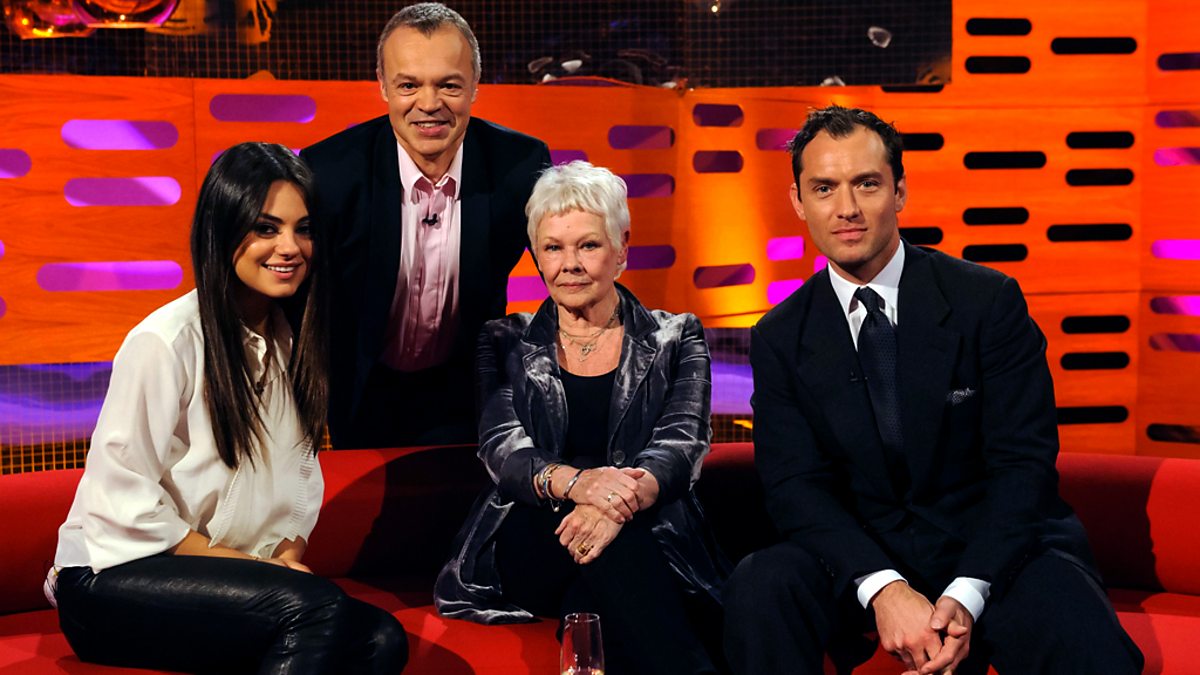Together on Graham's sofa are Sherlock Holmes star Jude Law, Ted and Family Guy actress Mila Kunis and the legendary Dame Judi Dench. With music from Olly Murs.