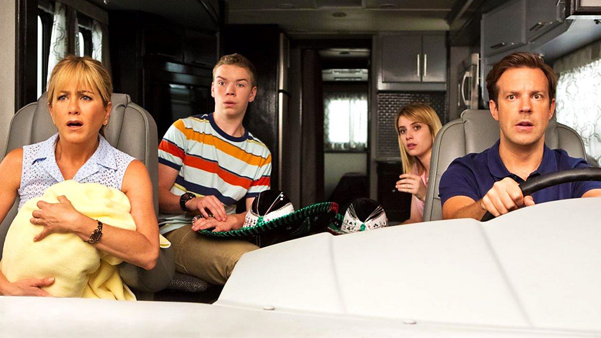Jennifer Aniston stars as a stripper turned pretend suburban wife and mother in the film We're The Millers. She becomes involved in the plans of a small-time drug dealer, played by Jason Sudekis, who enlists a fake family to help him smuggle marijuana across the Mexican border. Mark Eccleston reviews.