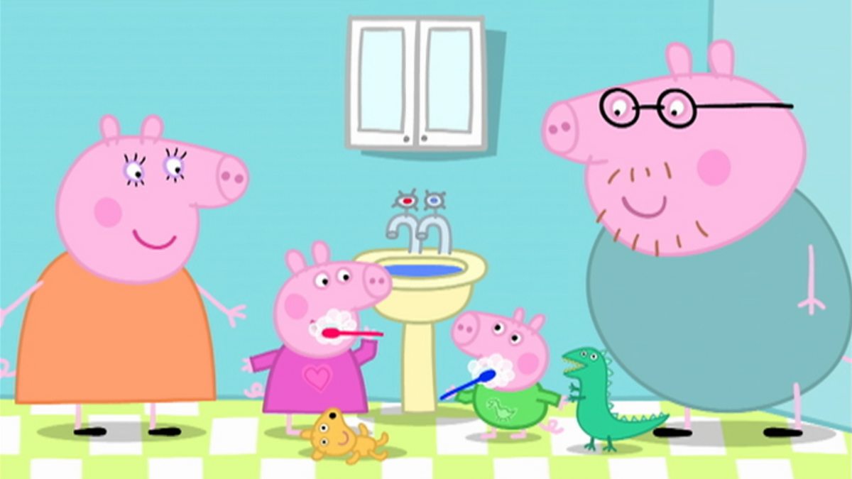 Today, Peppa and George are going to the dentist for a check-up. Dr Elephant, the dentist, says that Peppa and Georges's teeth are lovely and clean.