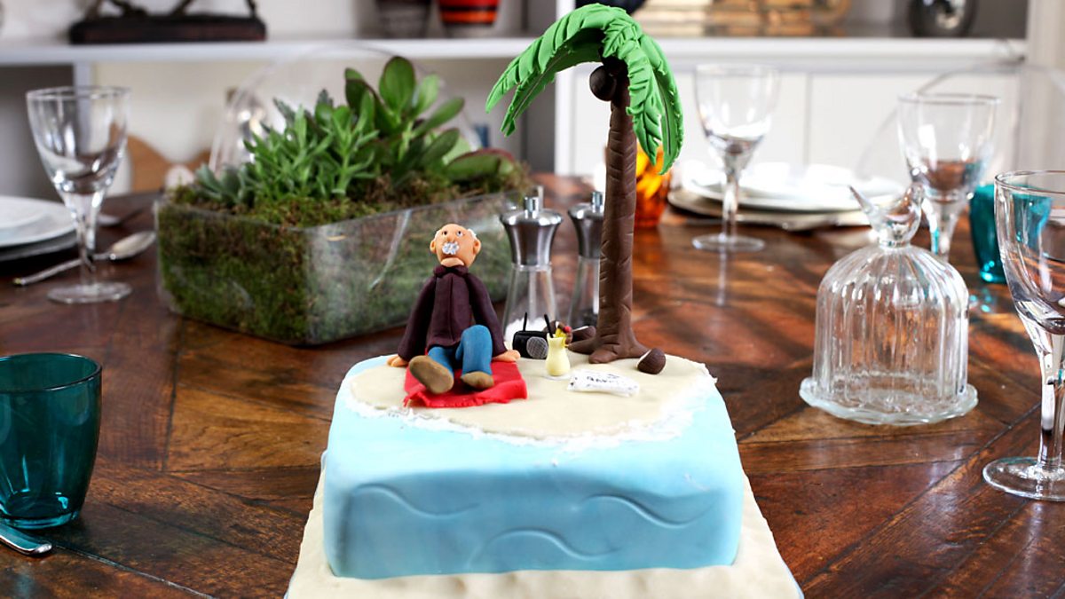 Paul Hollywood celebrates the best of British pies and puddings with cake decorator Adam Cox, making a pina colada pudding topped with a miniature Paul Hollywood under a palm tree.