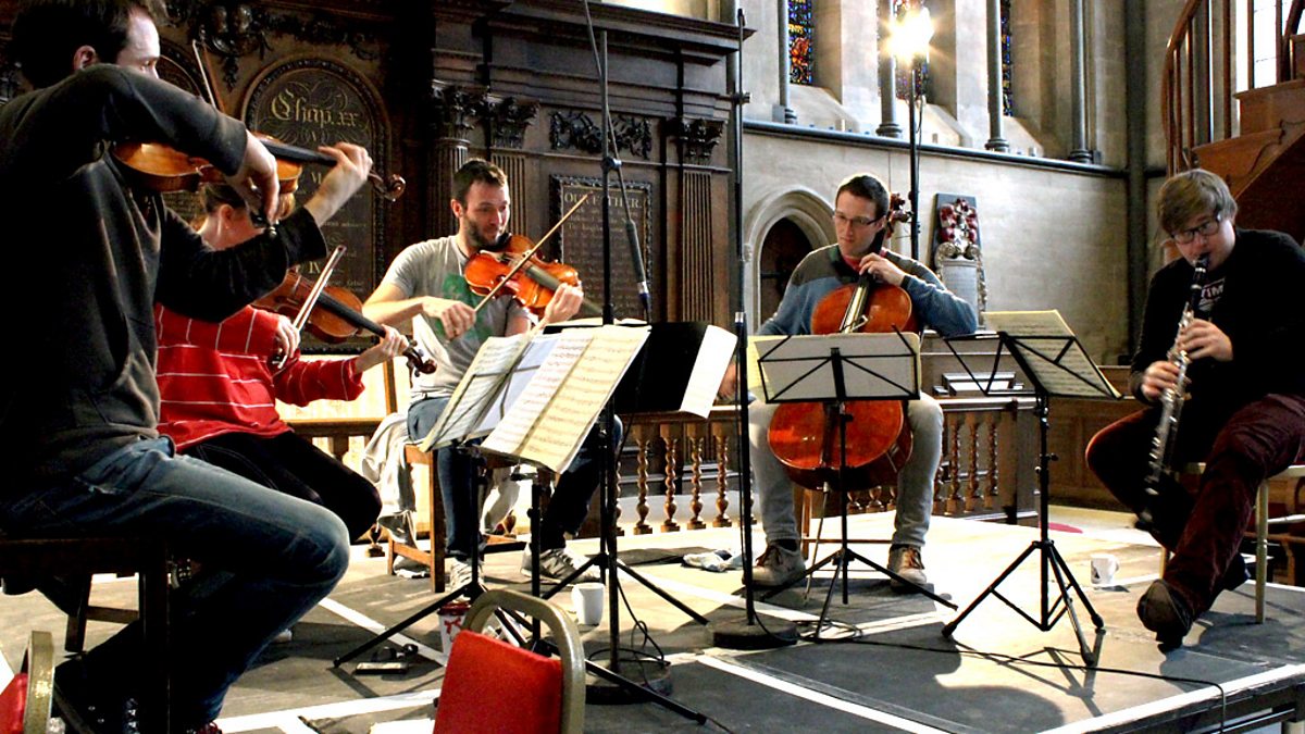 Mark Simpson (clarinet) and the Heath Quartet perform at the Temple Church in London. With music by Alwyn, Stravinsky, Arensky, Suk and Mozart.